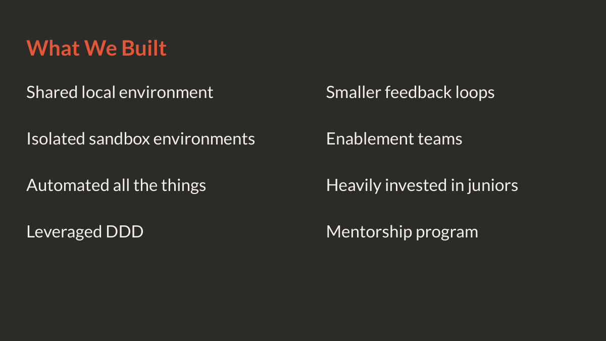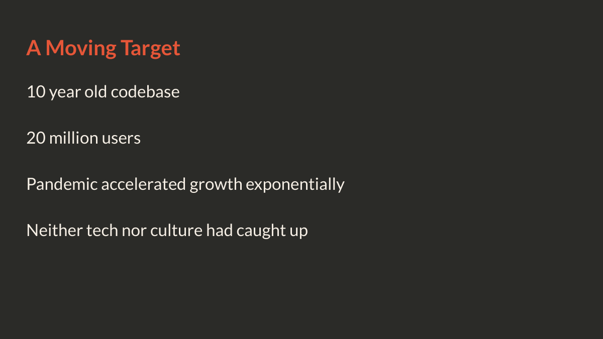 We invested in automation across the board: linting, static analysis, CI/CD. We invested in people through training and mentorship programs. We introduced event-driven architecture and leveled up our documentation with ADRs and PRDs. All of this happened while continuing to serve those 20 million users.