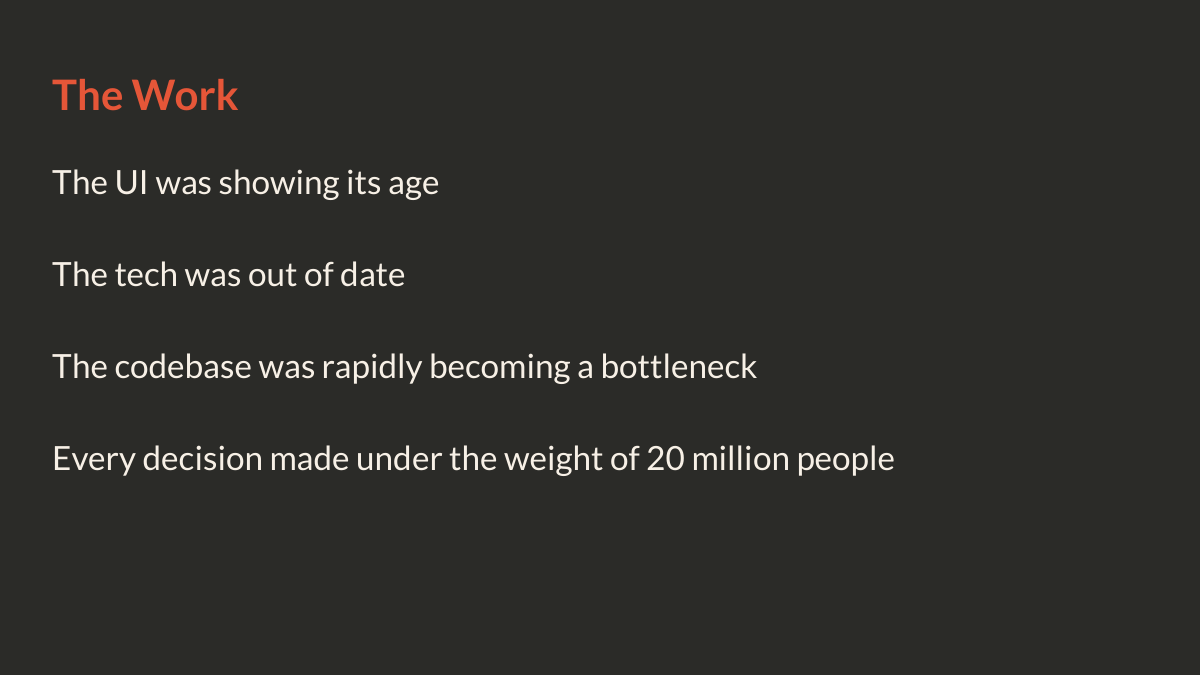 I spoke at Open Conf 2025 about a problem that doesn’t fit neatly into sprint planning: how do you modernize a platform when 20 million people depend on it not breaking?